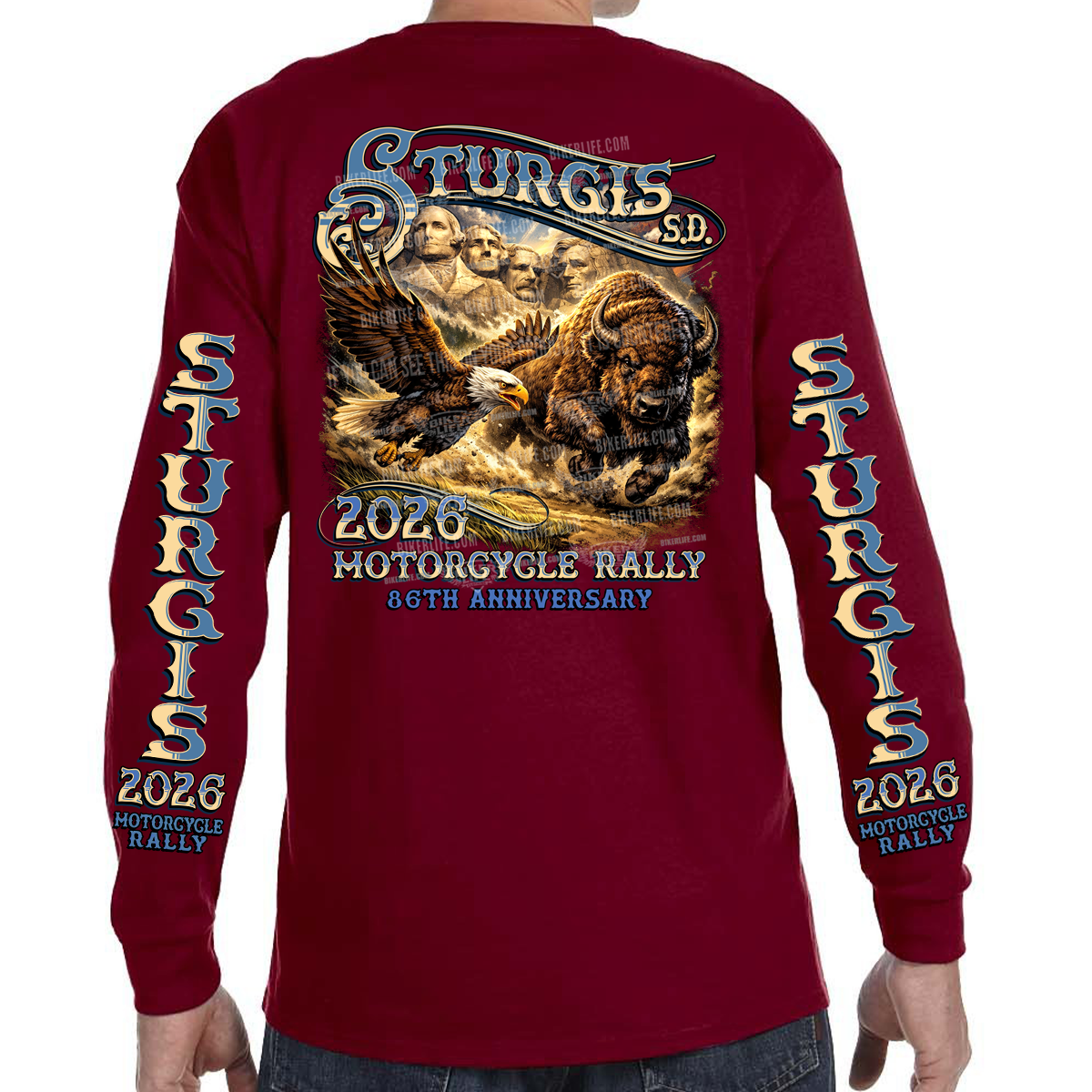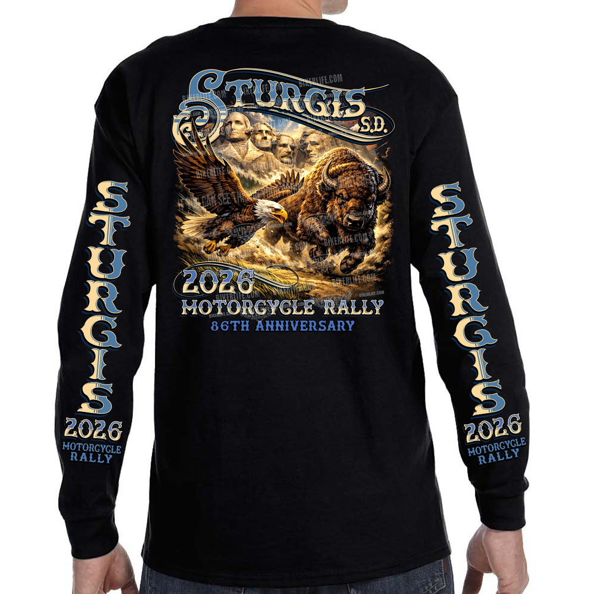 Long Sleeve 2026 Sturgis Motorcycle Rally Rushmore Bison