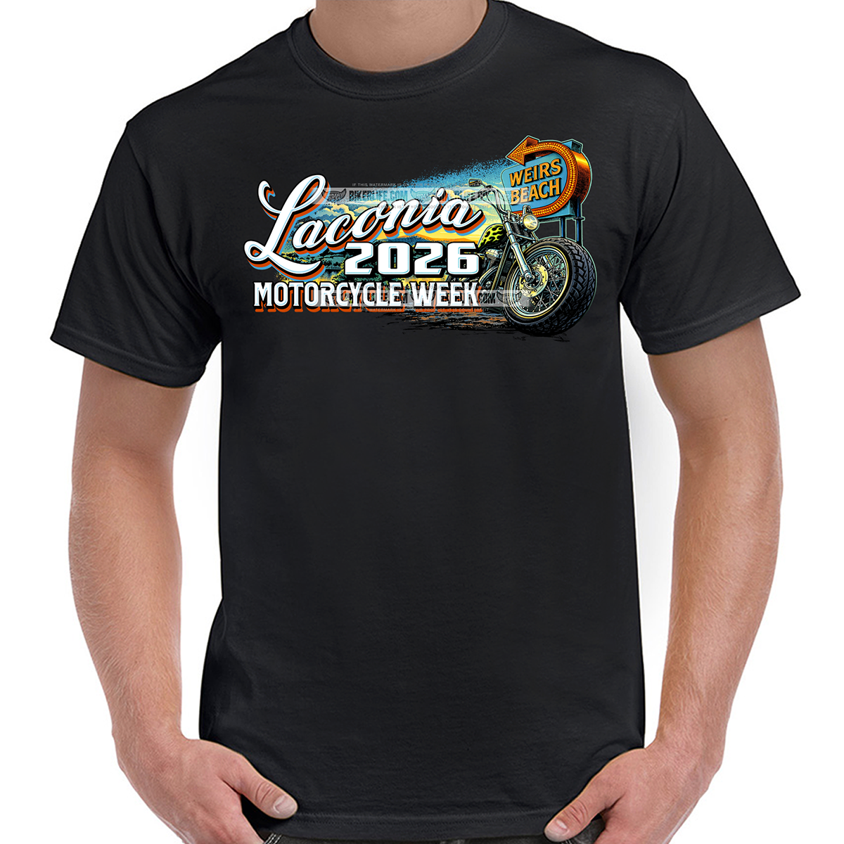 T-Shirt 2026 Laconia Motorcycle Week Weirs Beach Sign