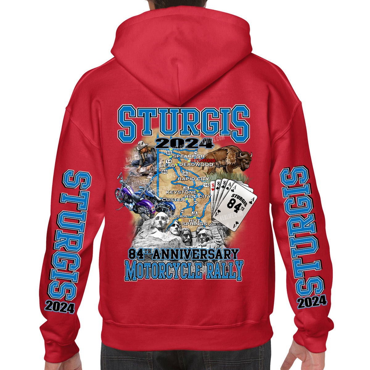 2024 Sturgis Motorcycle Rally Black Hills Map Pullover Hoodie