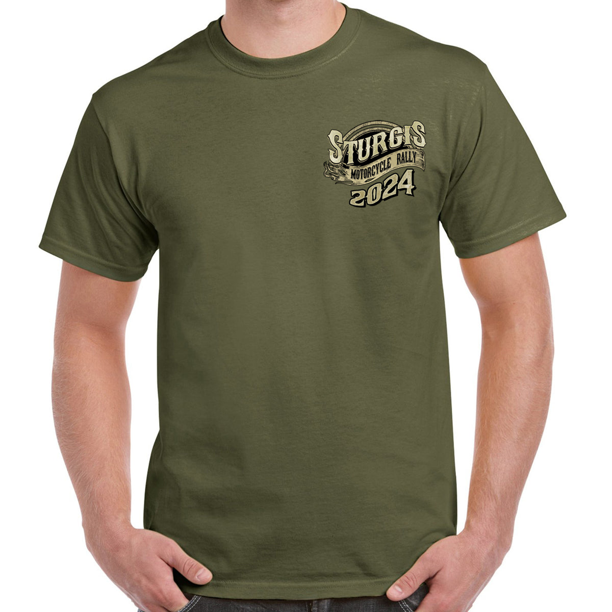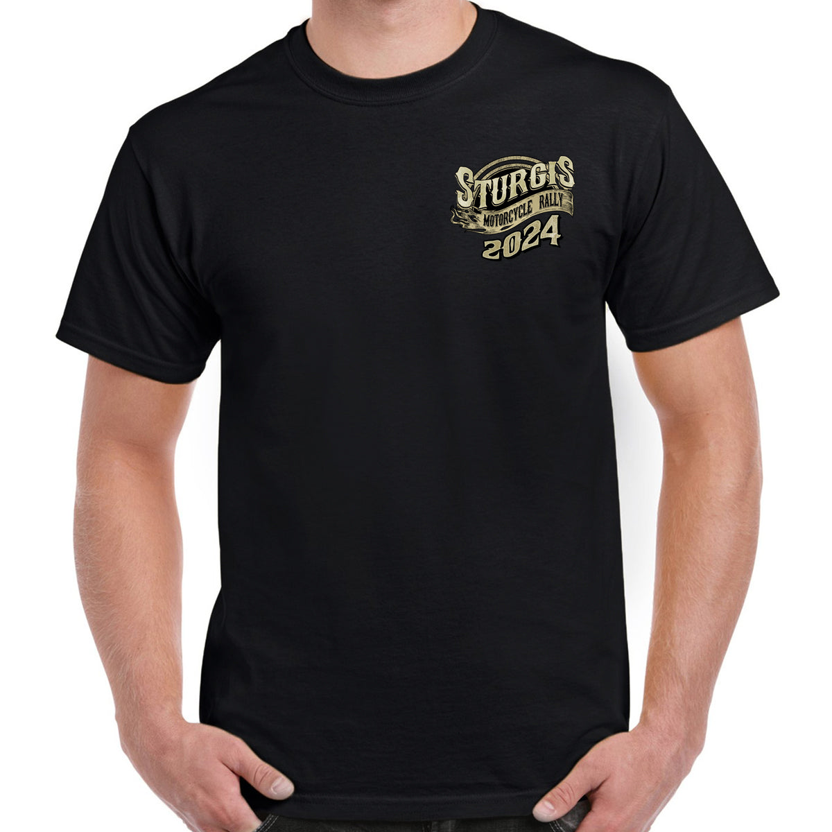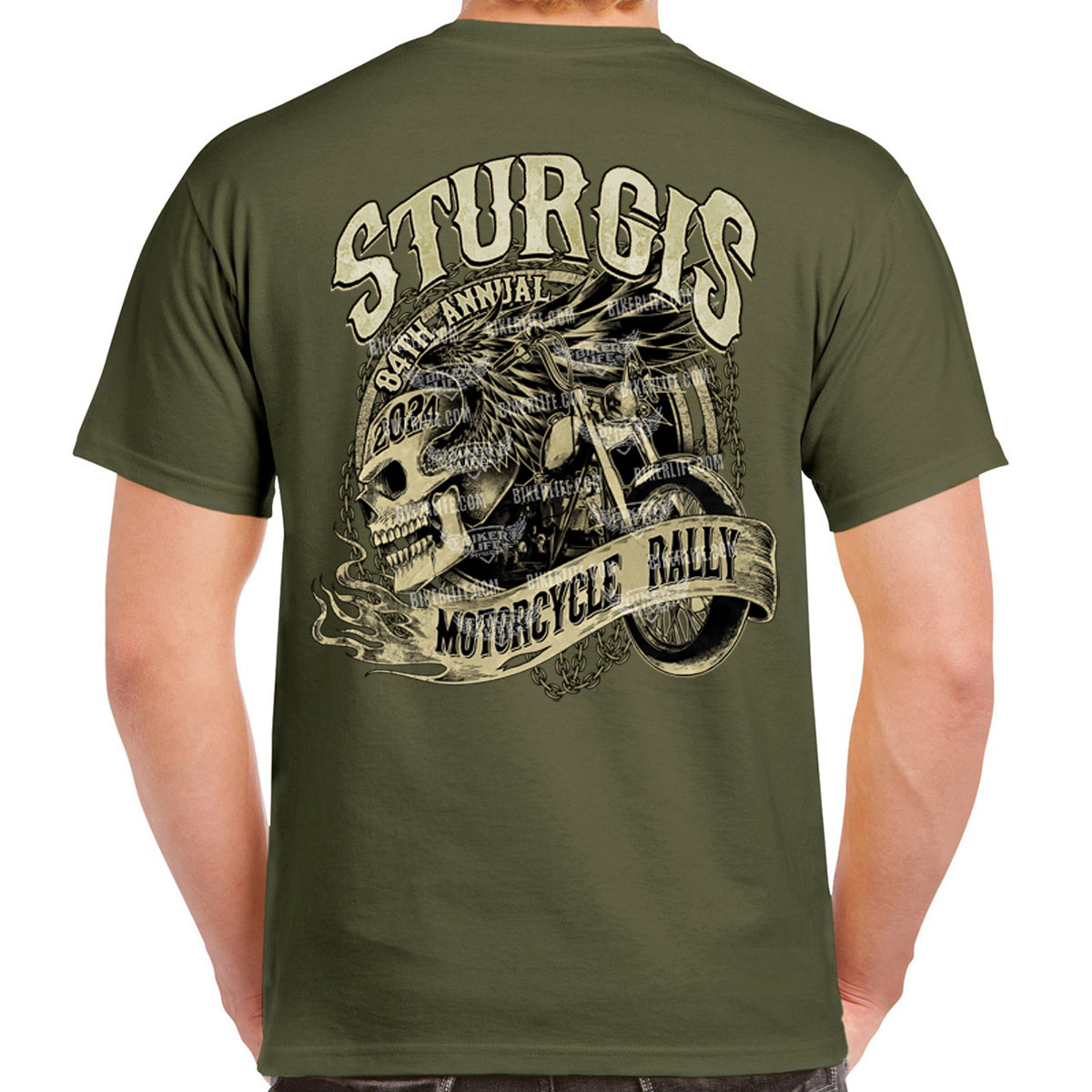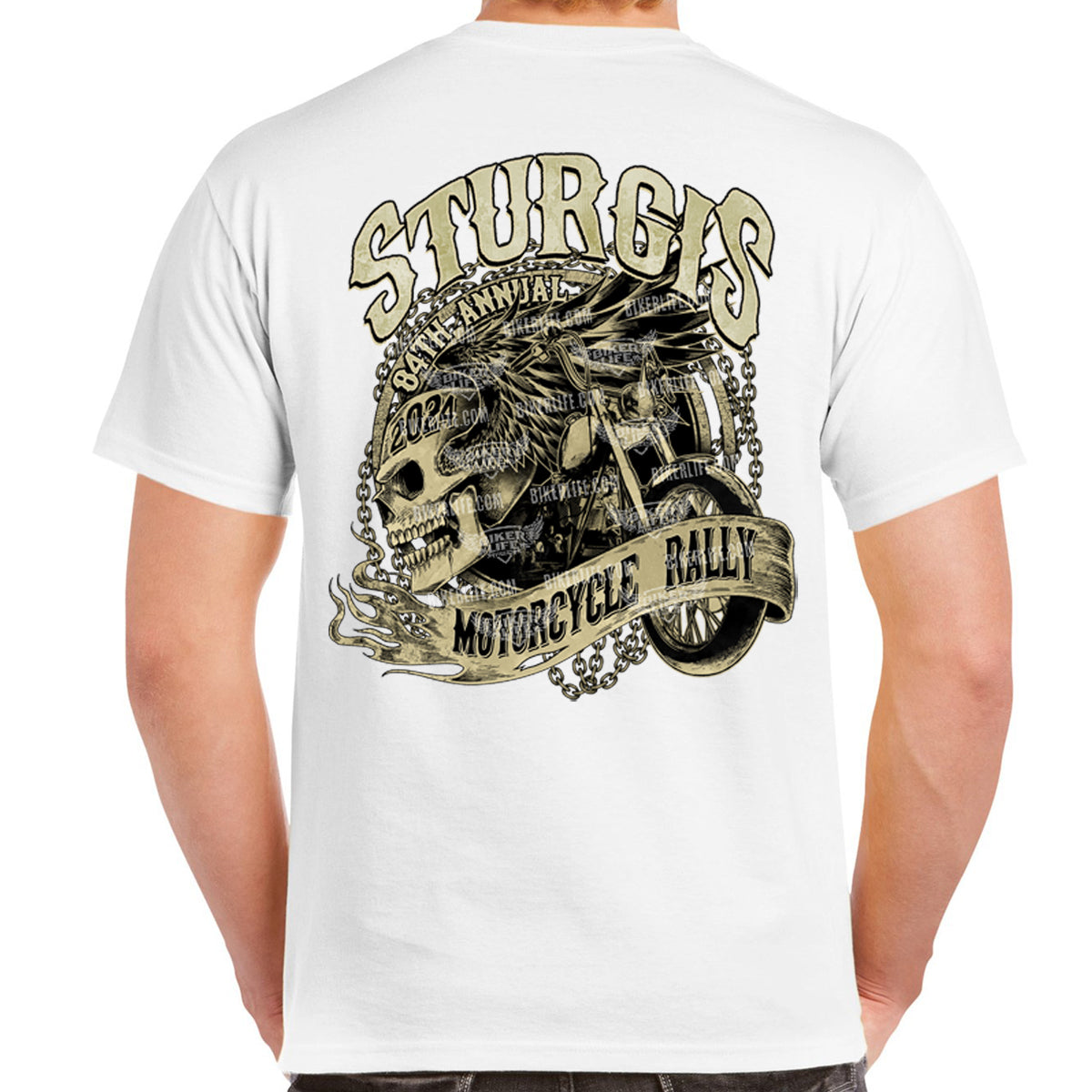 2024 Sturgis Motorcycle Rally Grunge & Chains Skull Wing T-Shirt