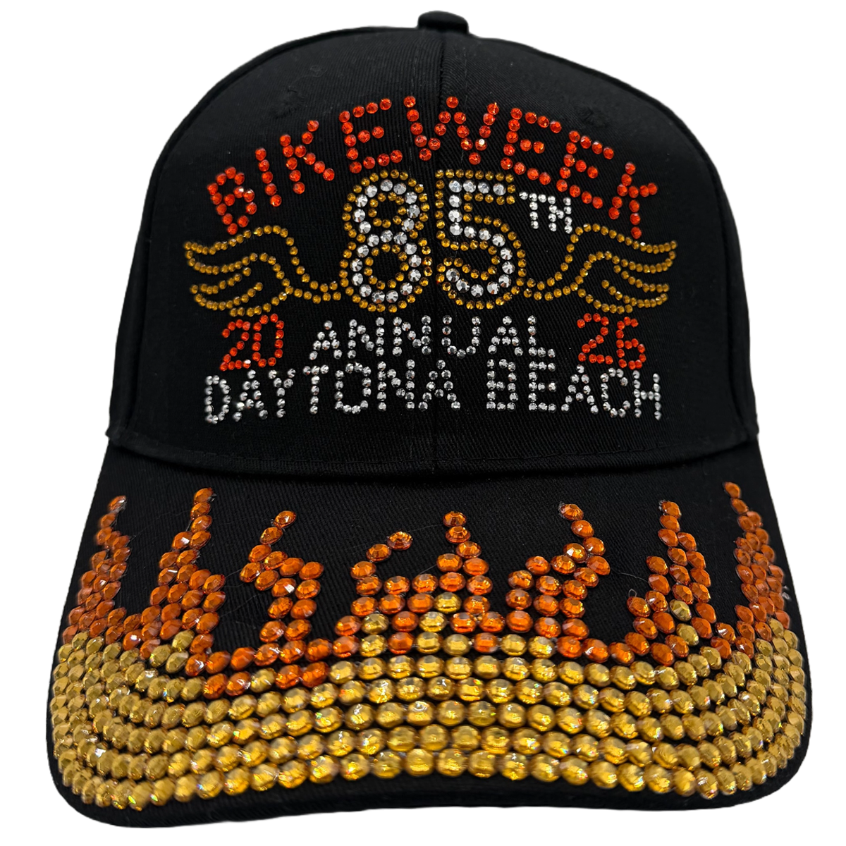 Hat 2026 Bike Week Daytona Beach 85th Anniversary Rhinestone Flame