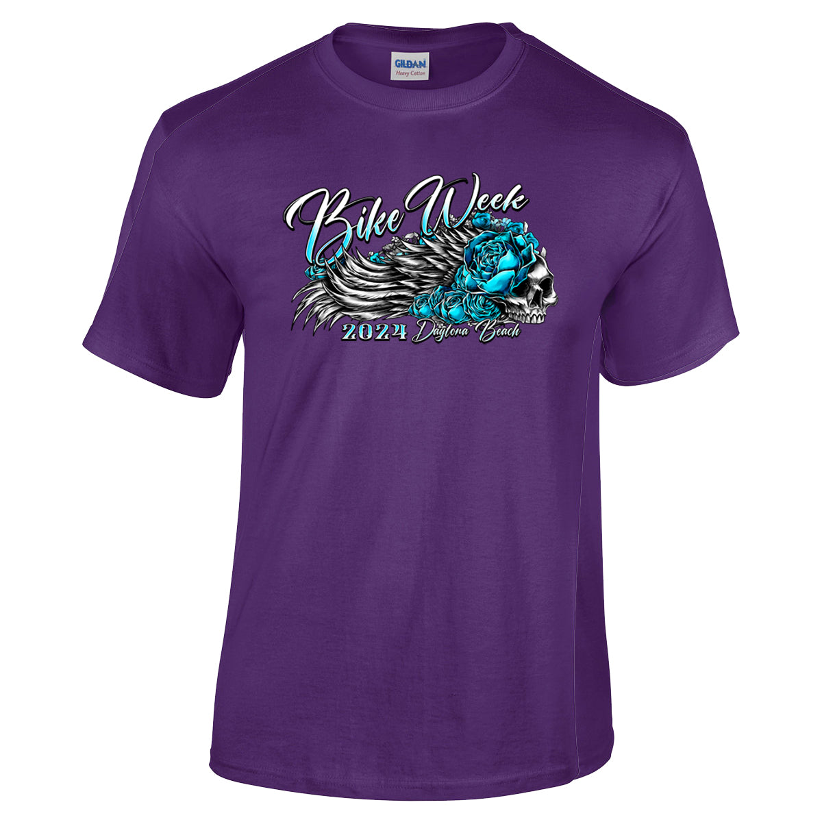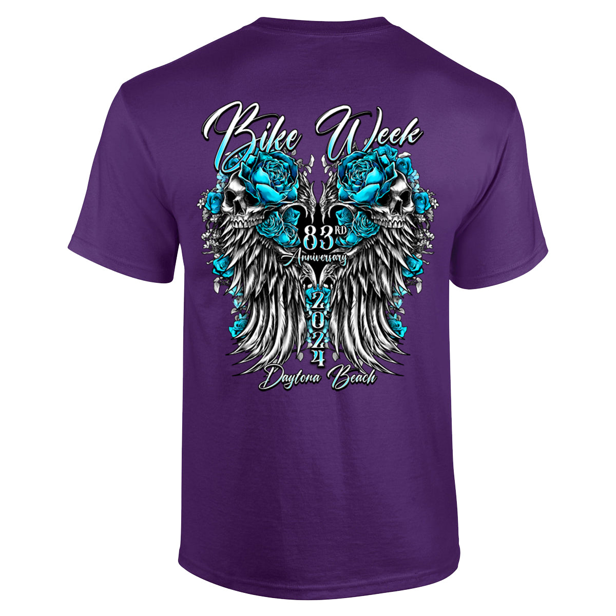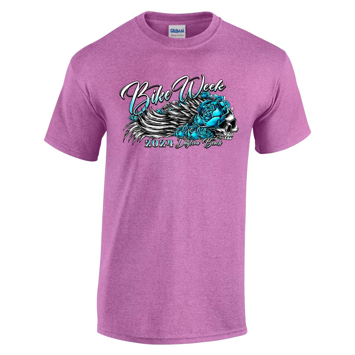 Ladies 2024 Bike Week Daytona Beach Rose Skull Wings T-Shirt