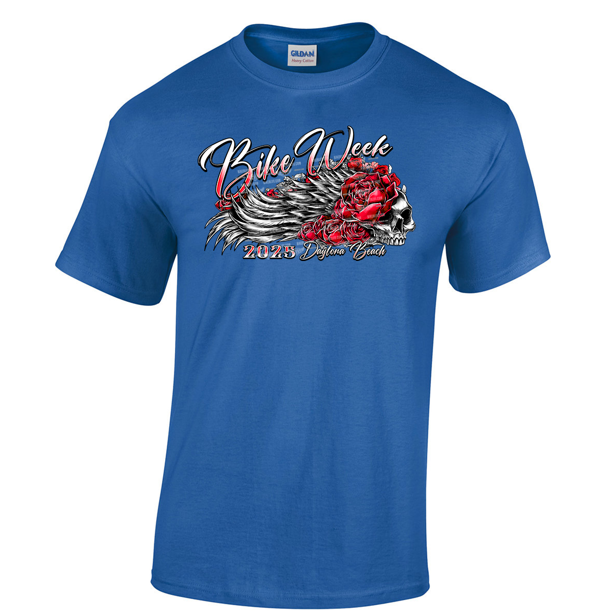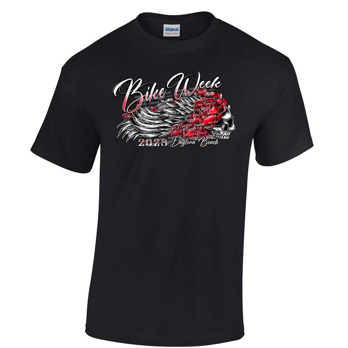 Ladies 2025 Bike Week Daytona Beach Rose Skull Wings T-Shirt