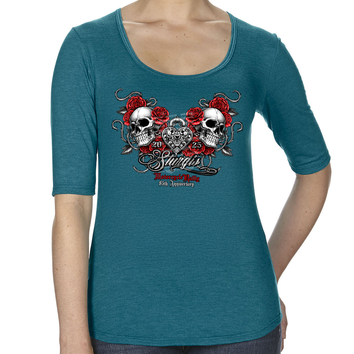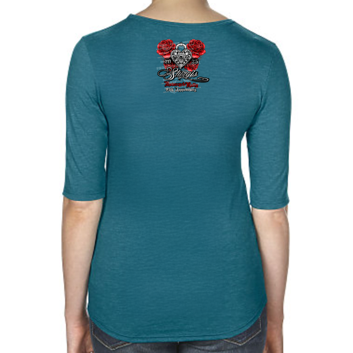 Deep Scoop 1/2-Sleeve T-Shirt Ladies 2025 Sturgis Motorcycle Rally Heart Locket
