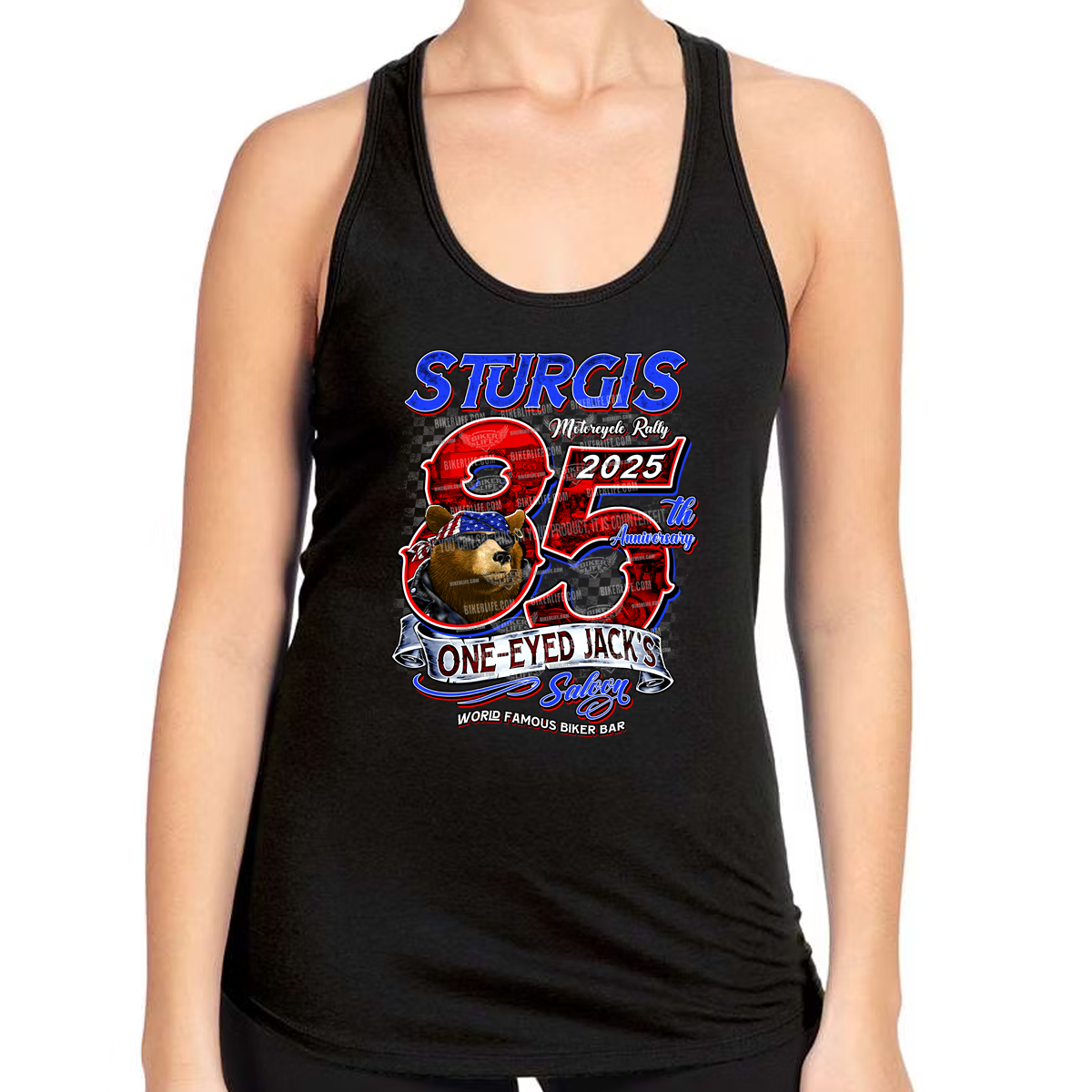 Racerback Tank Top Ladies SPECIAL EDITION 2025 Sturgis Motorcycle Rally One Eyed Jack's Saloon Big 85th