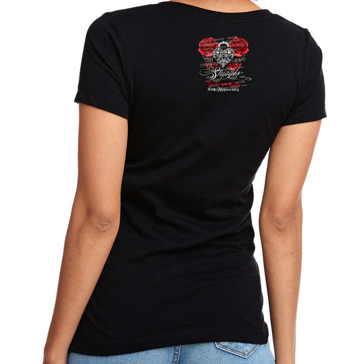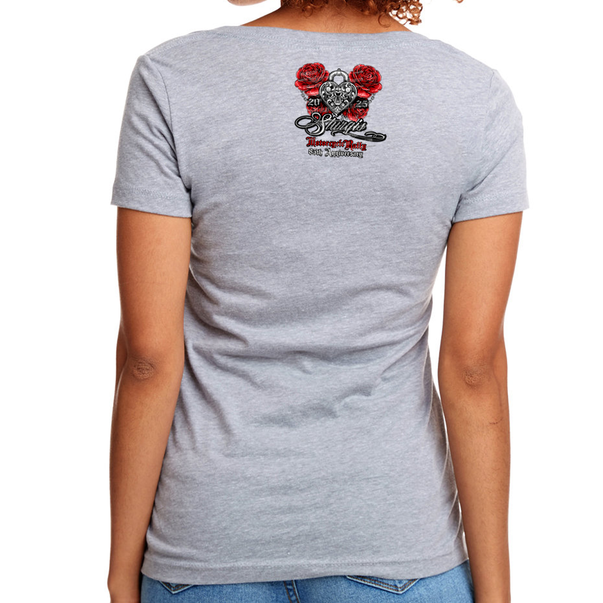 V-Neck Shirt Ladies Jr. Cut 2025 Sturgis Motorcycle Rally Heart Locket
