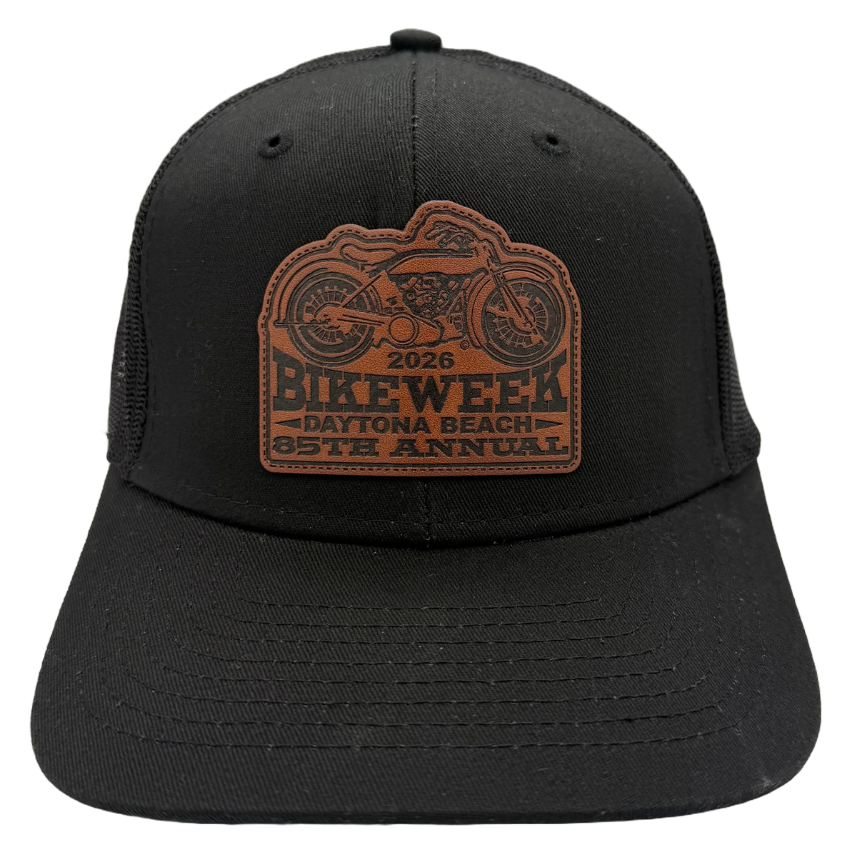 Trucker Hat 2026 Bike Week Daytona Beach 85th Anniversary Leather Patch