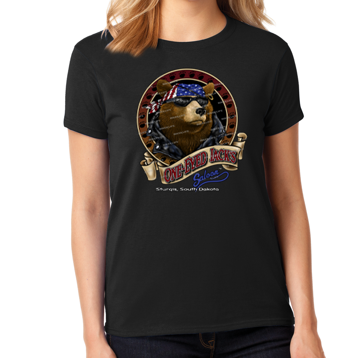 Ladies One Eyed Jack's Saloon Cool Bear Front Printed T-Shirt
