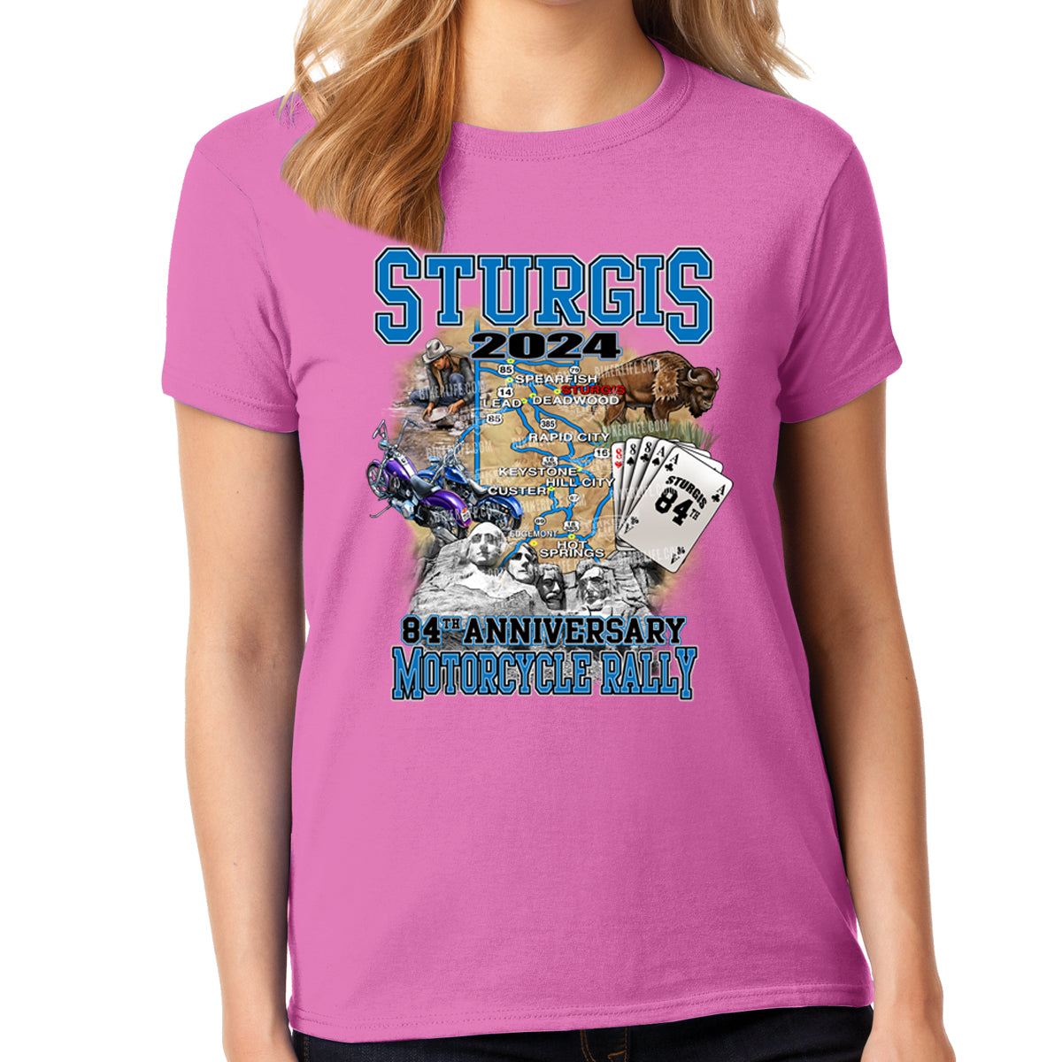 Ladies Missy Cut 2024 Sturgis Motorcycle Rally Black Hills Map T-Shirt