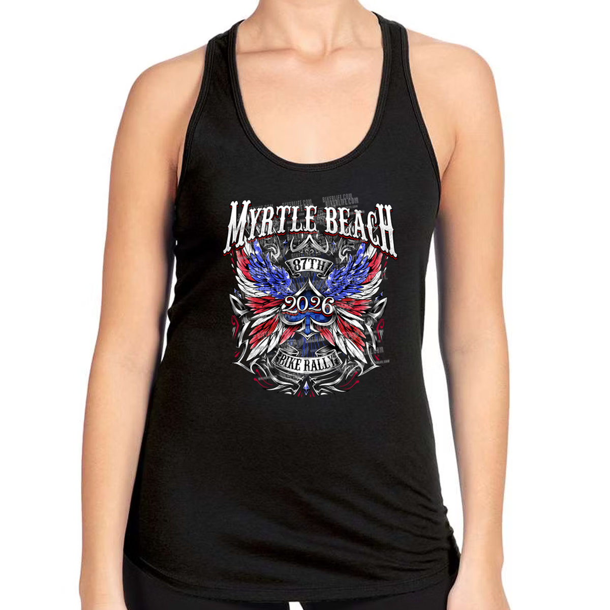 Racerback Tank Top 2026 Myrtle Beach Bike Rally Patriotic Wings